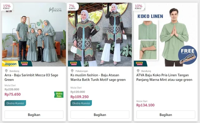 Salah satu platform belanja yang menyediakan berbagai pilihan pakaian muslim warna sage green yaitu di Evermos.